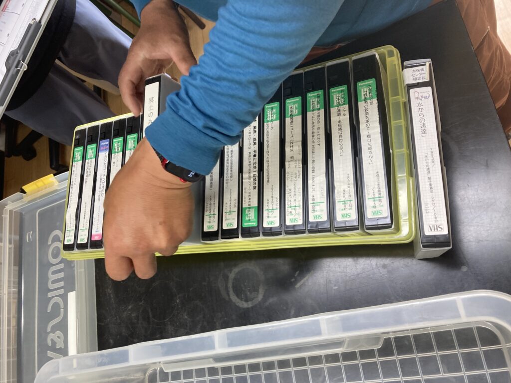 MさんとIさんは、VHS資料からDVDに変換されていないものを資料室から取り出す作業をしてもらいました。が、データベースの資料番号と本体の資料番号が合っていなかったり、リストが分かりづらかったり、トラブル続出。想定よりも大変な作業となってしまいました・・・。